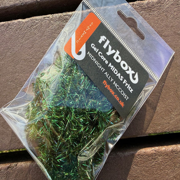 NEW for 2026 Gel-Core “MIDAS” Fritz features a new Golden Pearl Filament, which creates a colour-change effect in the material as the golden yellow pearl reflects differently in each colour it’s dyed into.  This filament is quite different from standard opal pearl, and works really well on stillwater colours.  The filament is ultra low denier, and super soft – this material ties very easily and is build on a fine gel-core.  This material gives the competition angler yet another option when targeting rainbows.